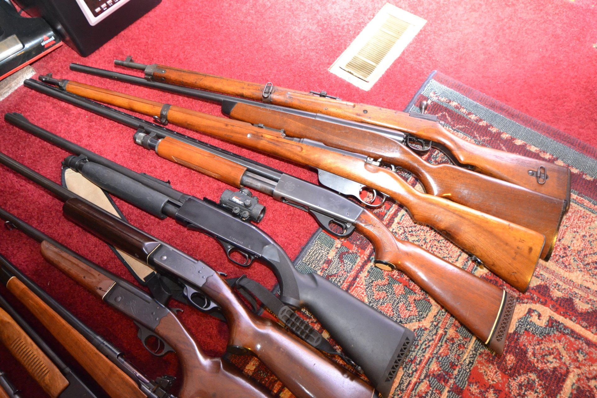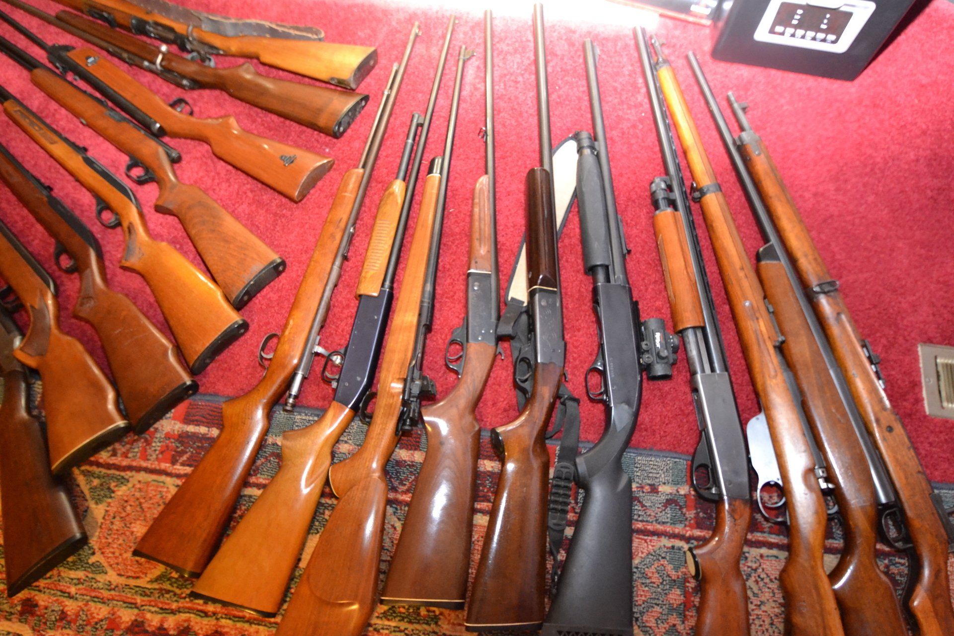 GUNS: S&W M-916T; Remington Mod. 03-43; Glenfield Marlin .22; H&R 12 ga. Single shot; Winchester Mod. 1300; JC Higgins Mod-583-1100; Steyr M-95; SS Krege 12 ga; Brazilian import 20ga; Weisenstein USA 410 ga. Pump; Stevens 66-B rifle; Iver & Johnson .22; Stevens .22; Pleasure air rifle; Savage 3-; Farrica Arms Oviedo 1922 rifle; full stock Japanese military rifle; rifle scope; bayonet; dagger and so much more!