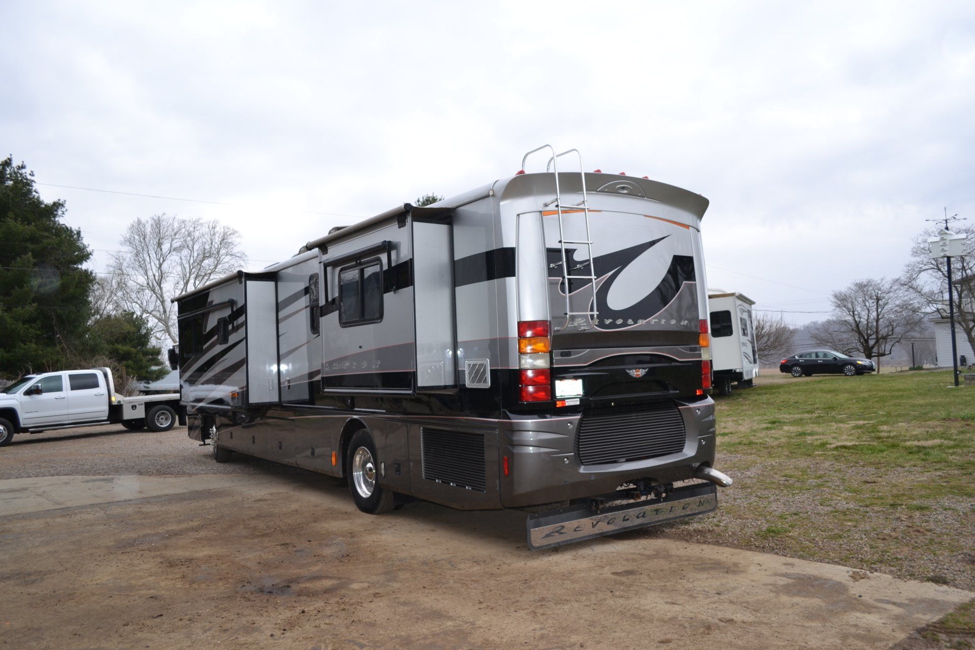 2004 Revelation Diesel Pusher Motor Home on Freightliner Chasis-350 Cummins diesel, air ride, diesel generator, 2 slides, sat. dome, 3 TV’s, only 38,000 miles, like new