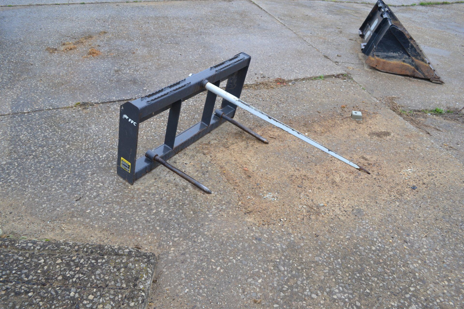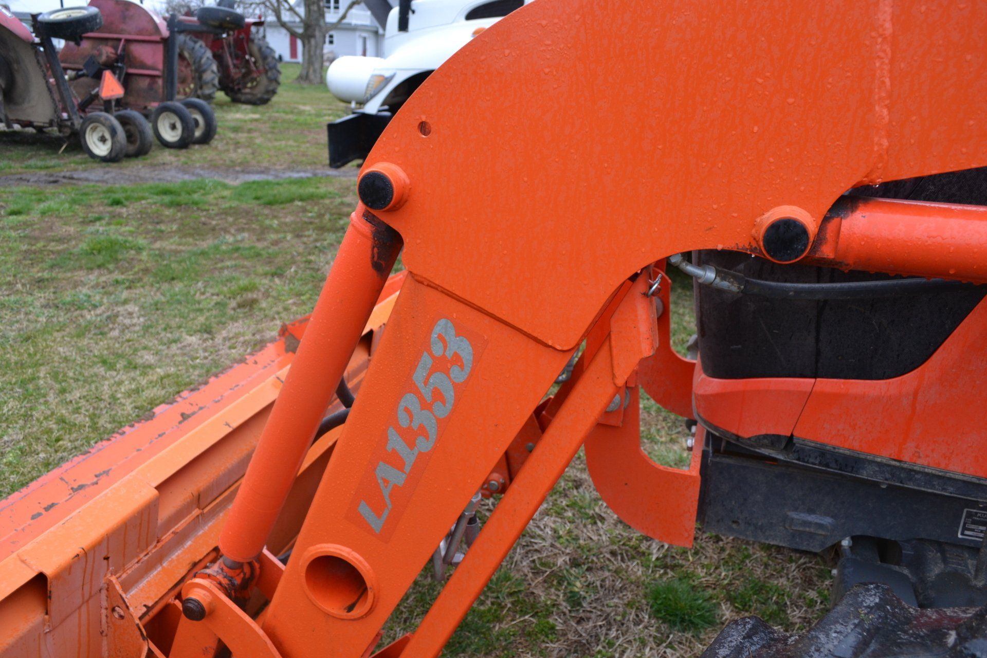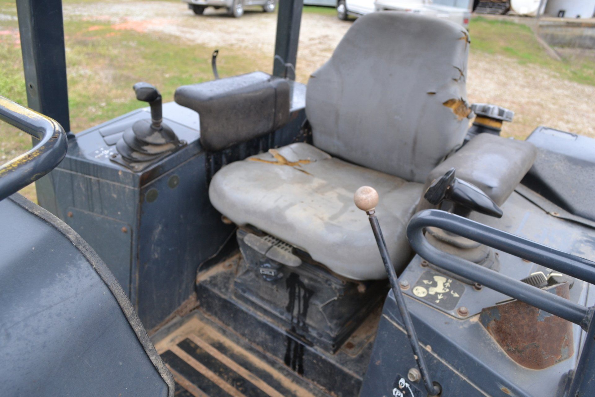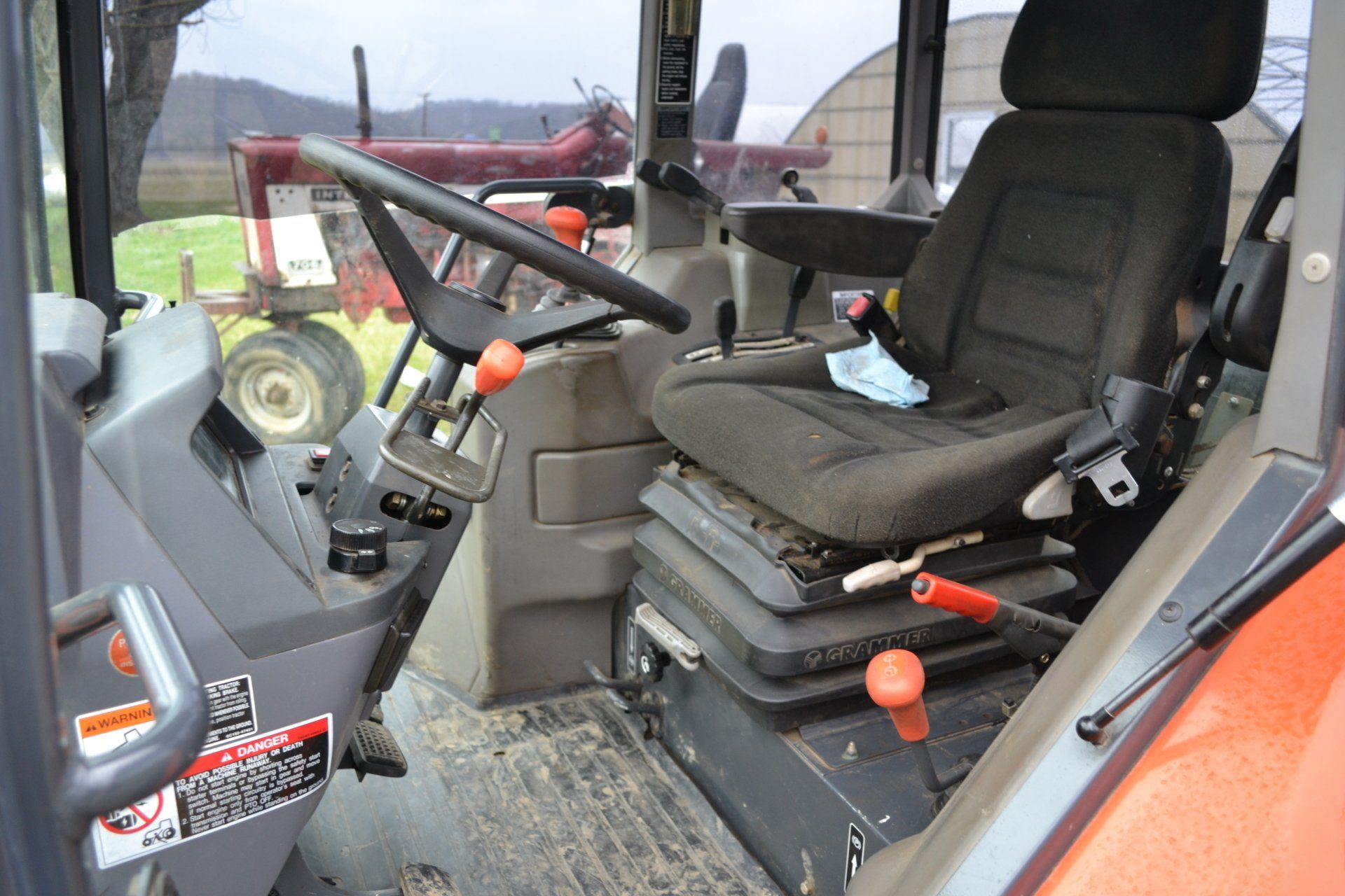 John Deere 320D-cab, AC, electric disconnect, 571 hours; 72” John Deere rotary cutter; Bale Spear; Pilot Forks; Grapple; Post Hole Digger-9”, 12”, 15” auger; Tracks