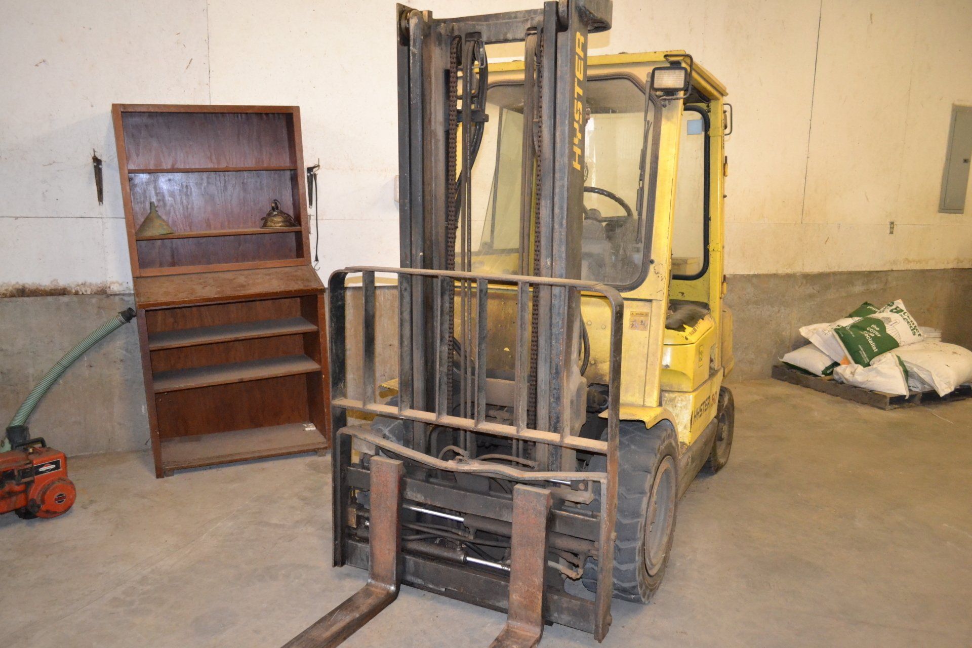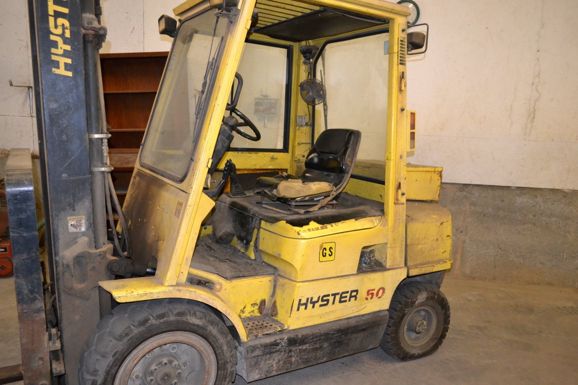Hyster 50- 5000 lb. with Cab-gasoline, side shift, hydraulic adjustable forks, 4912 hours