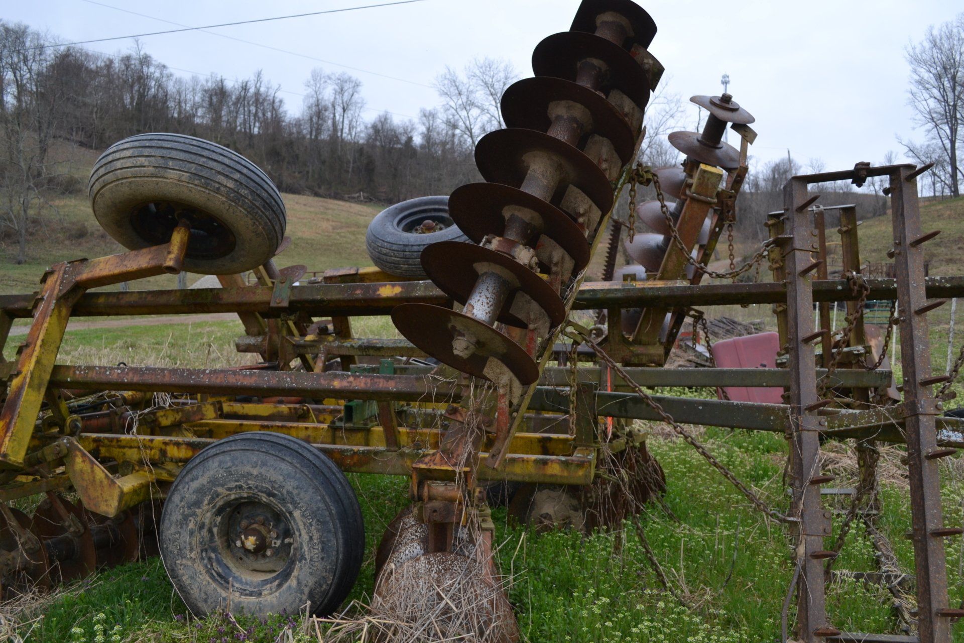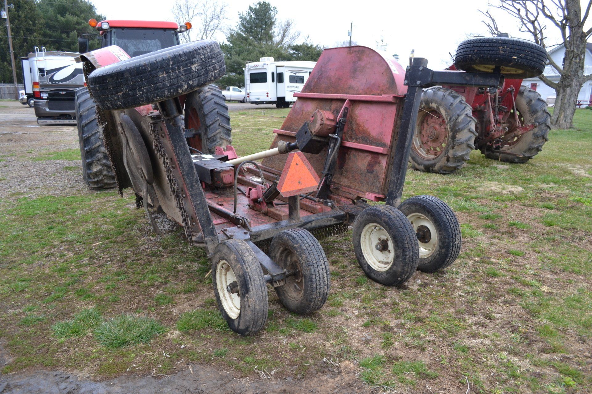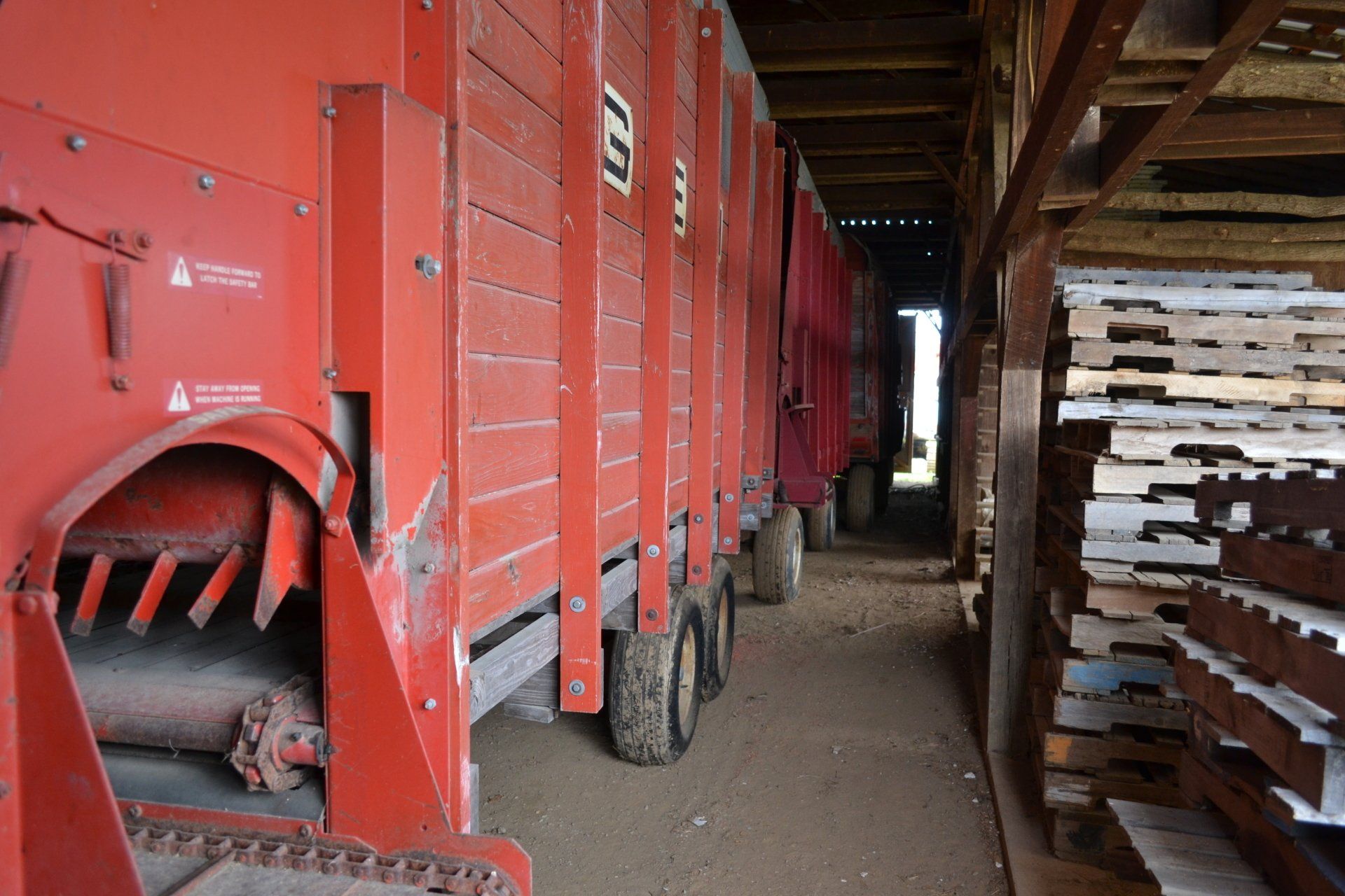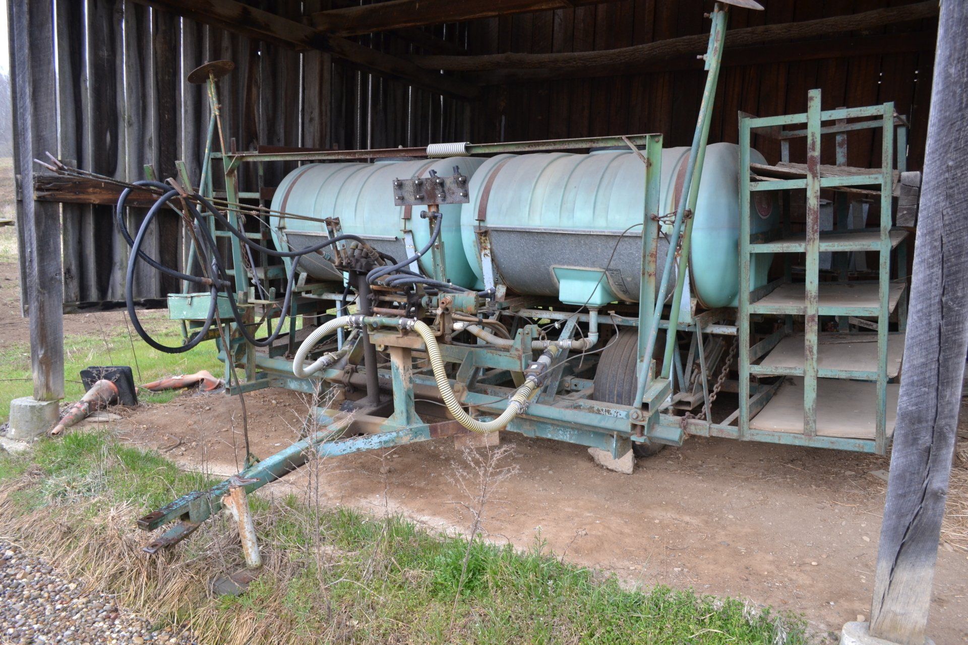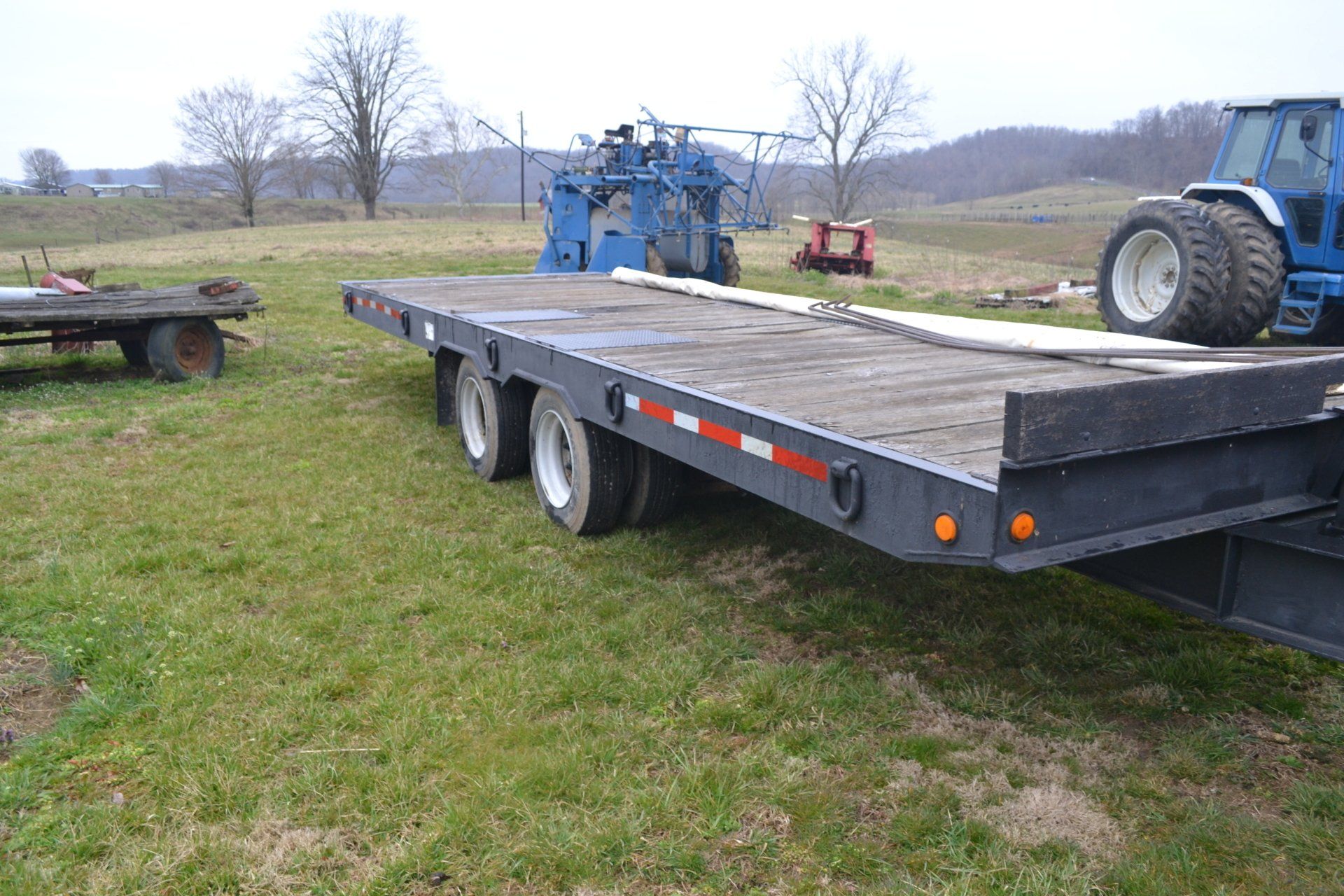 Gehl Chopper-2 row corn head, 6 foot grass head; (3) Gehl Silage Wagons-(1) NH Silage Wagon; John Deere 660 Manure Spreader-double beater, slop gate; (8) flatbed wagons on 10 ton gears with floatation tires; Steiner roll top forage blender with scales-self contained, hydraulic; 8 “ x 61’ Westfield Auger-electric wench; Holland 4 Row Transplanter-carousel, 1000 units markers; John Blue High Boy Sprayer; Field Sprayer-45’ booms, stainless steel tanks; Taylor Way-15’ batwing rotary cutter; Amco 20’ Disc; 12’ Harrogator; (6) Rail Wagons; (4) Stick Wagons & Sticks; 60,000+ Tobacco Sticks; (2) Big Bale Boxes-hydraulic with electric motor; (2) 1500 Gallon Plastic Water Tanks; 2 New 18.4 x 38 10 ply Tires