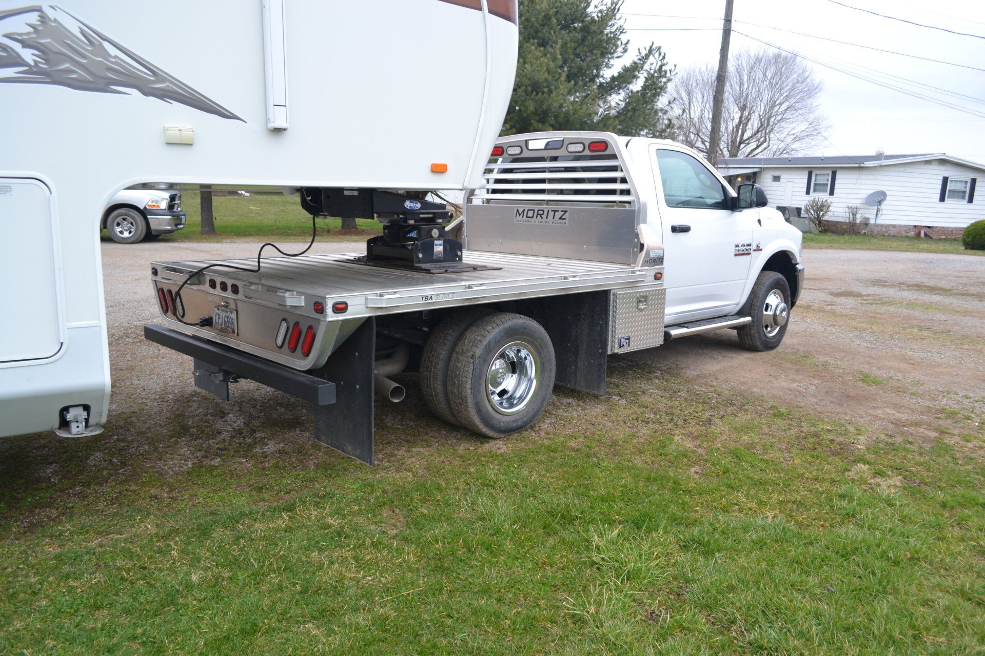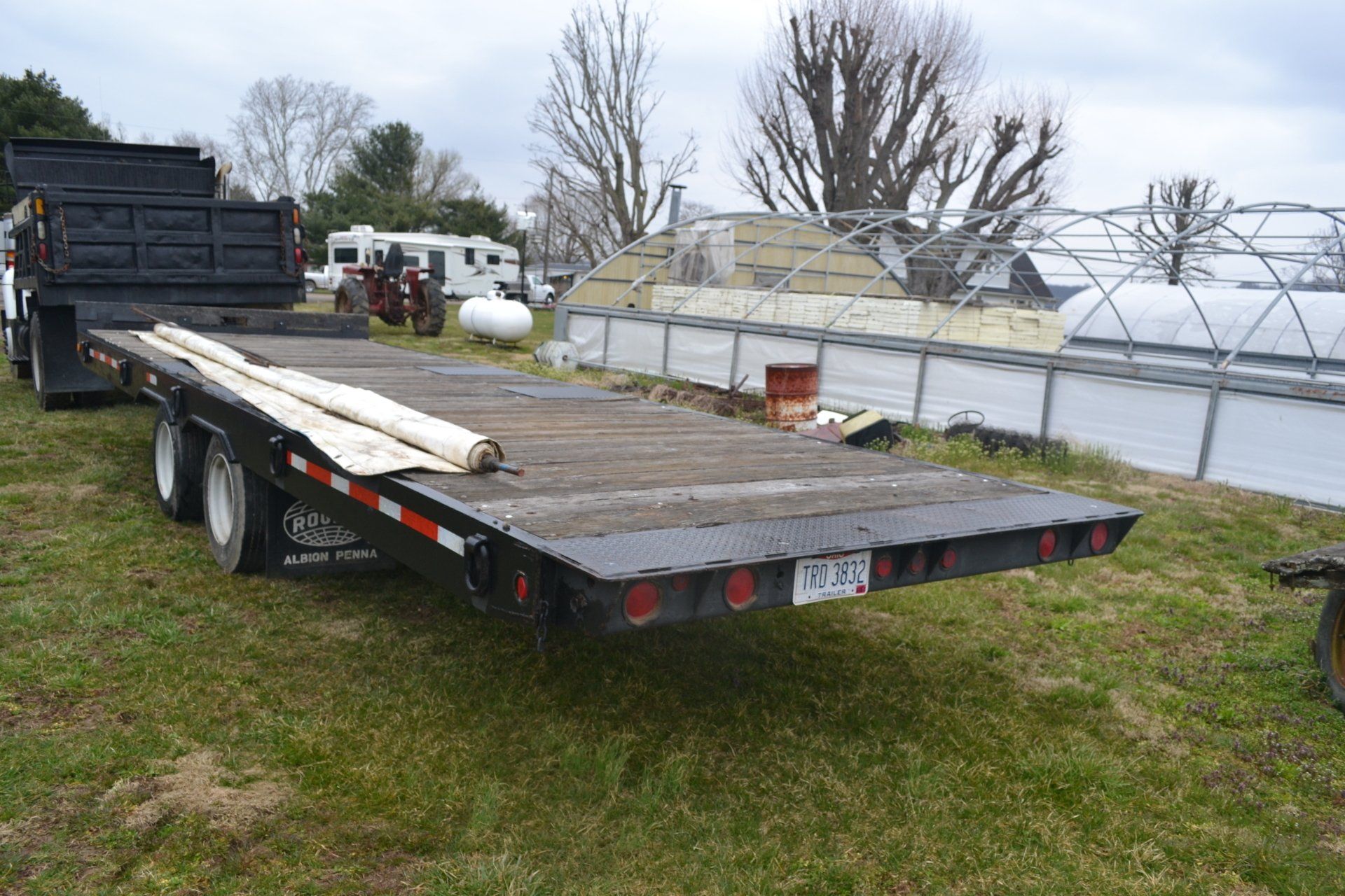 2016 Dodge 3500 dually-Cummins diesel, automatic, leather interior, with Moritz aluminum flatbed, only 8450 miles; 2004 International Single Axle Dump Truck-DT 466 engine, Fuller transmission, good tires, 108,000 miles; 1994 Ford-7.3 diesel, automatic with utility bed; 20 Ton Equipment Drag, tilt bed, new brakes, 16 ply tires, Pintle hitch; Gator 25’ + 5’ GN trailer with tandem duals