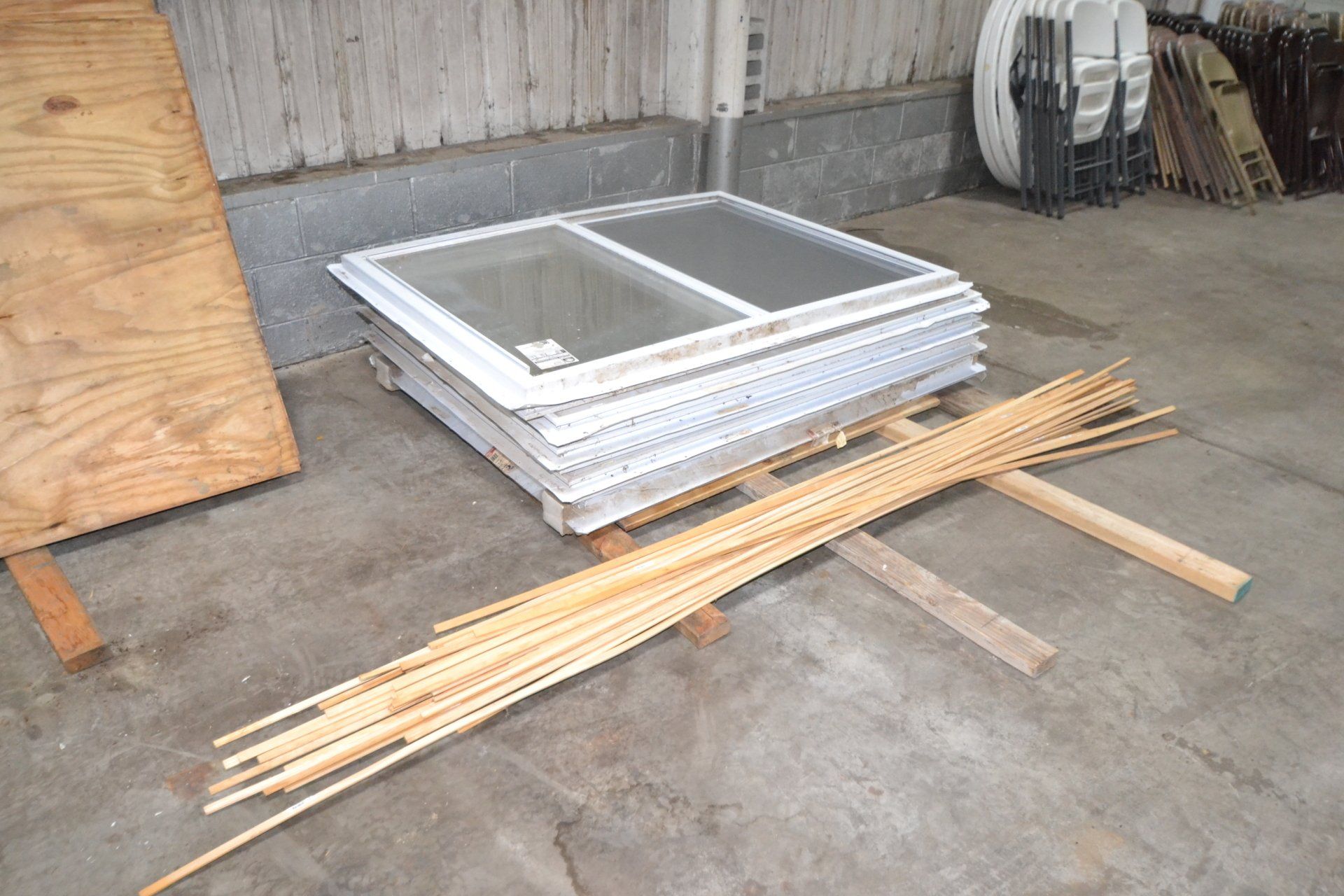 Building Materials-New lumber 2x4, 2x6, 4x4, 2x8, 2x10; plywood; pallet of pavers; PVC; conduit; doors; full spool (500’) 6-3 in ground UF-B; (5) matching vinyl sliding windows; pallet of rebar and more.