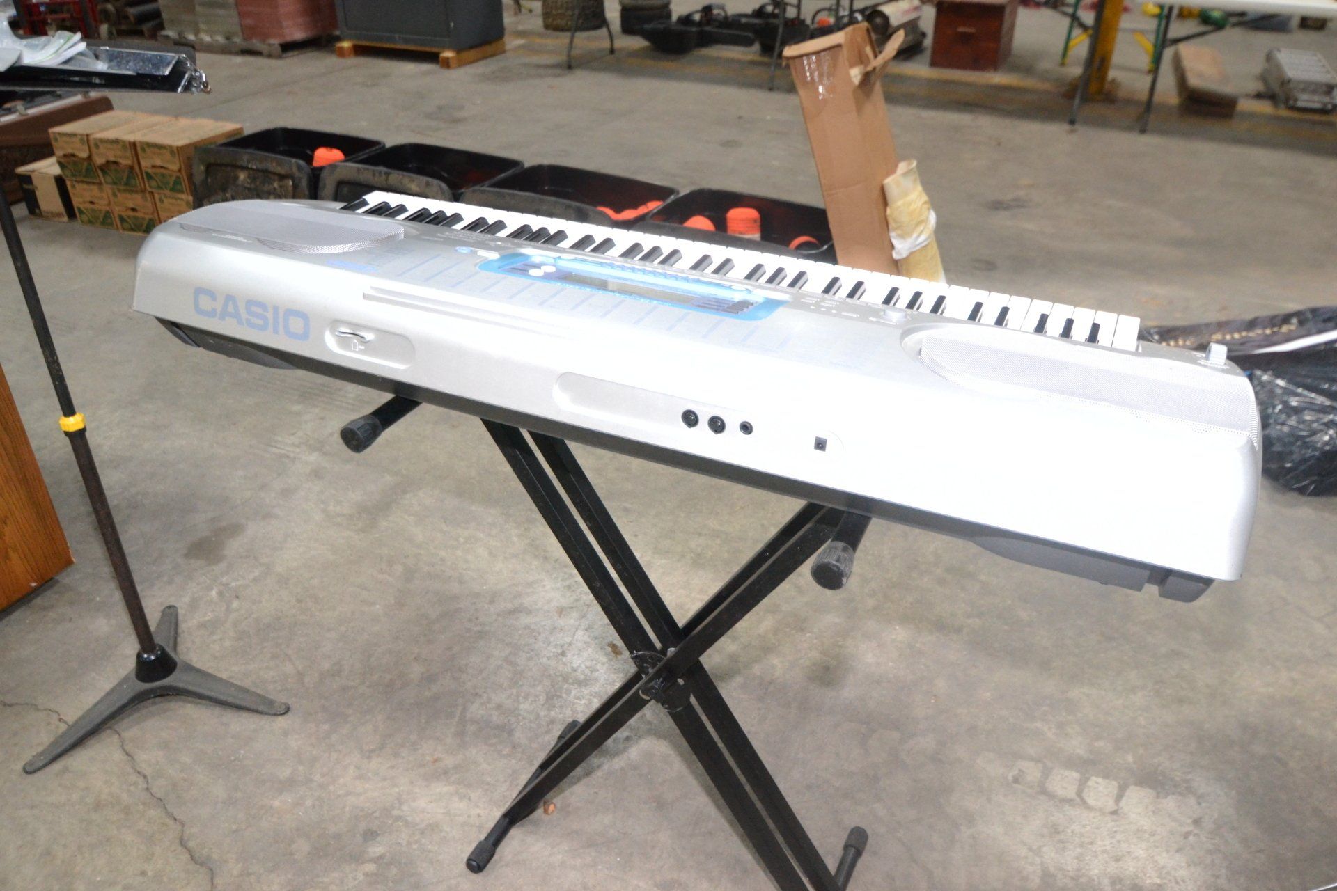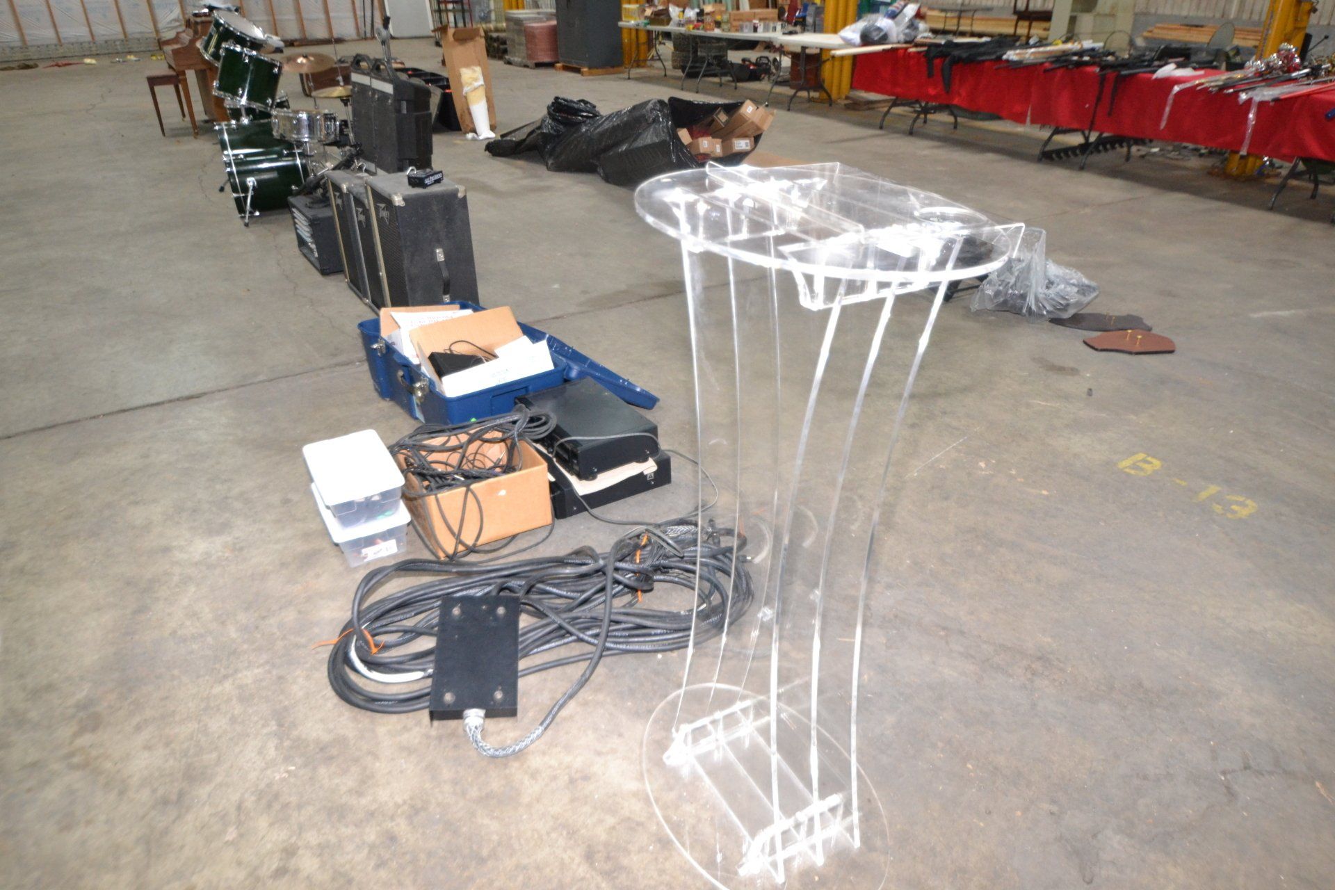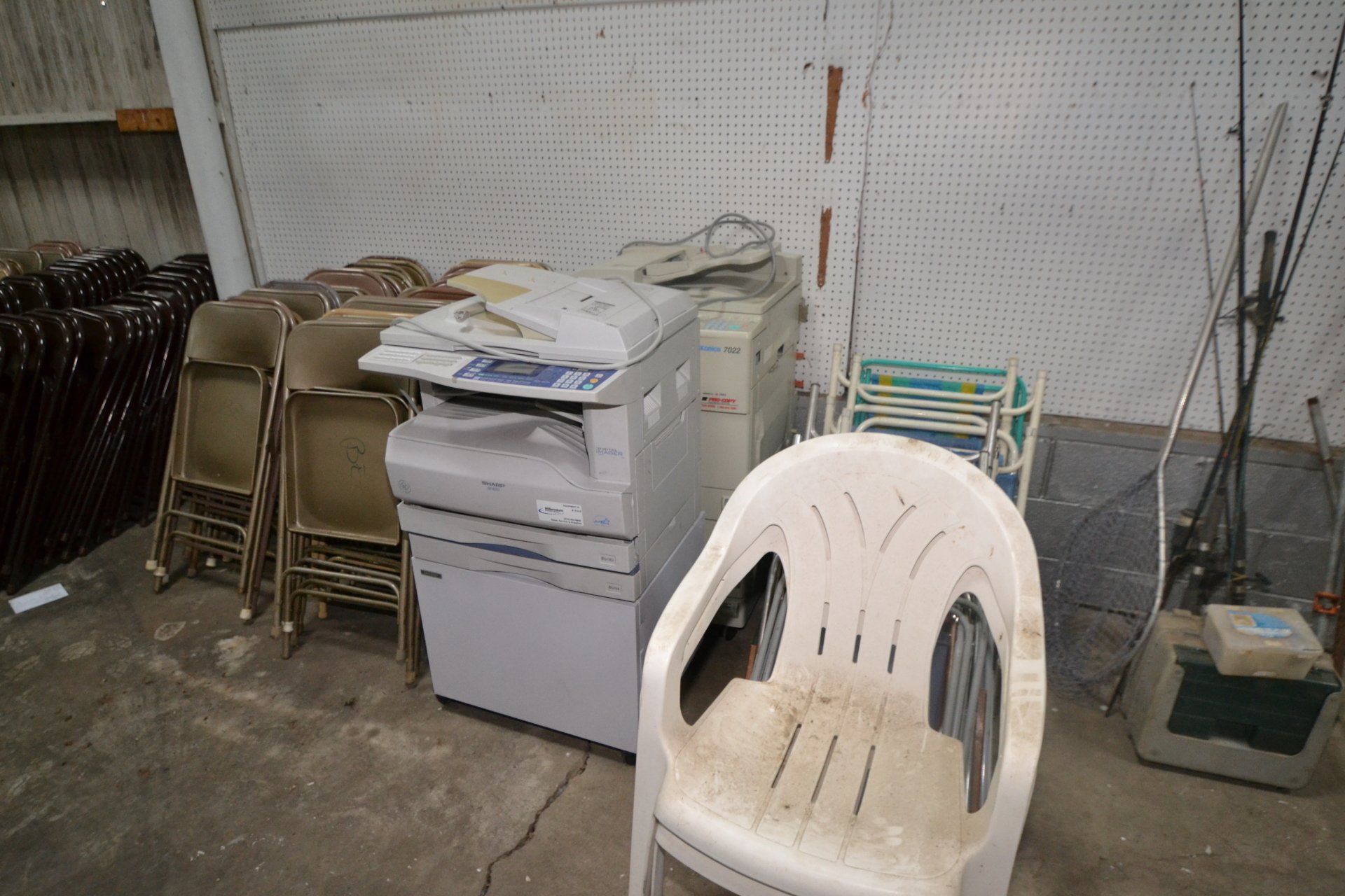 From a Local Church That Closed-Conn spinet piano; Casio keyboard; Pearl drum set; Peavey PA system; nursery toys and furniture; Lifetime tables and chairs; copiers; metal folding chairs; shelves; cabinets; large window AC; fans, heaters and more.