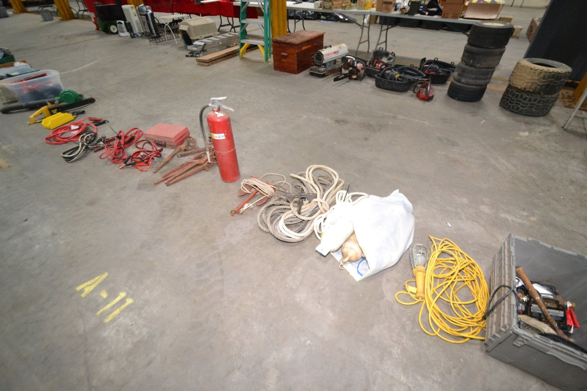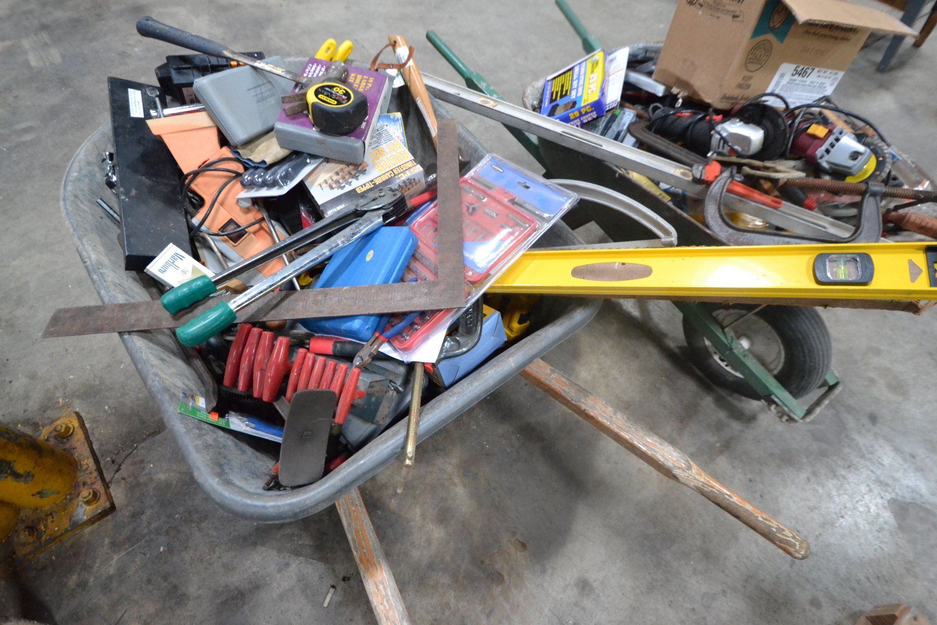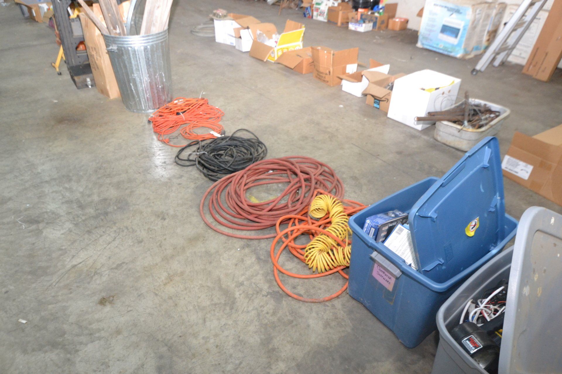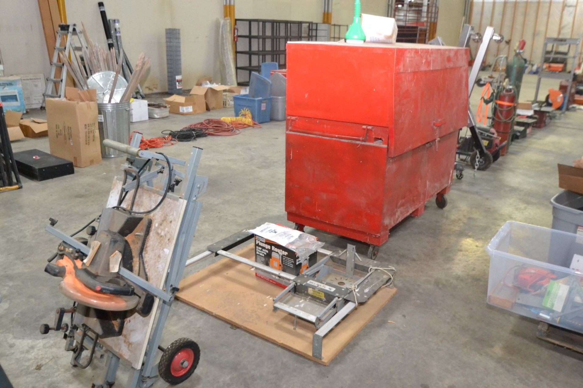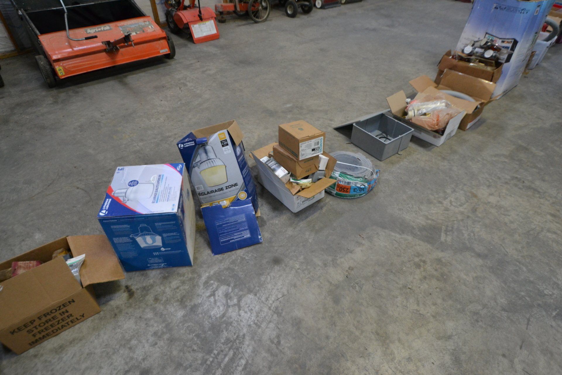 Miscellaneous-new cement mixer; power drain opener; tool cabinets; tool boxes; drill presses; bench grinders; large airless paint sprayer; port-a-powers; floor jacks; hoses; cords; cabinets; shelves; power washer; new LP gas heaters; folding shop crane; boxes of new electric and plumbing parts; panels; breakers; wire; outlets; brass PVC and much, much more.