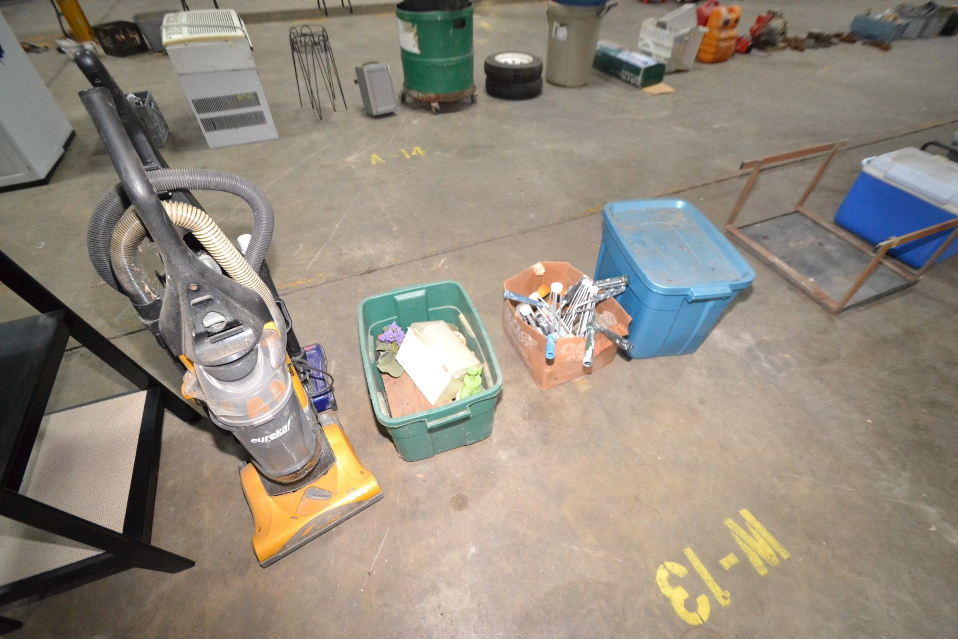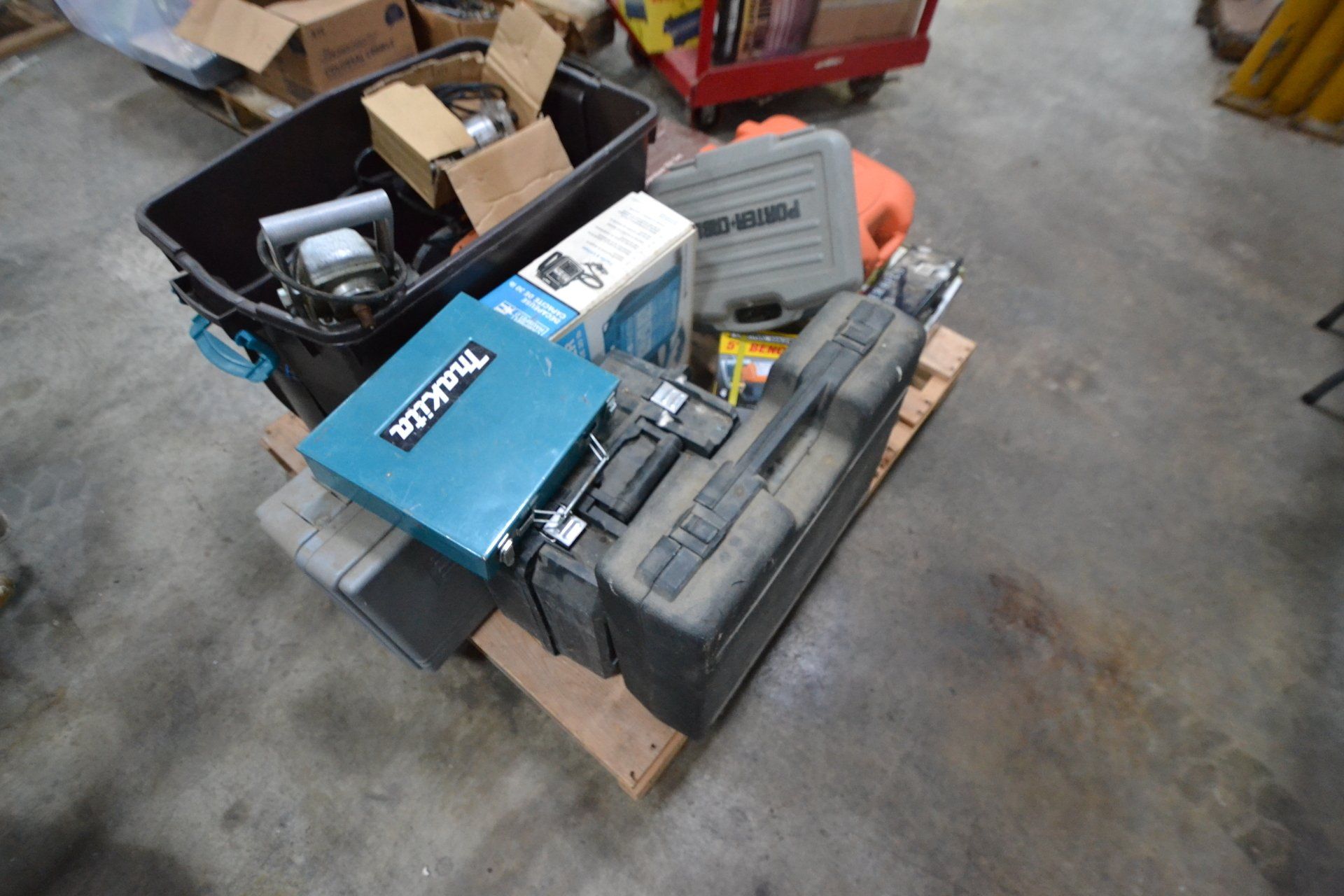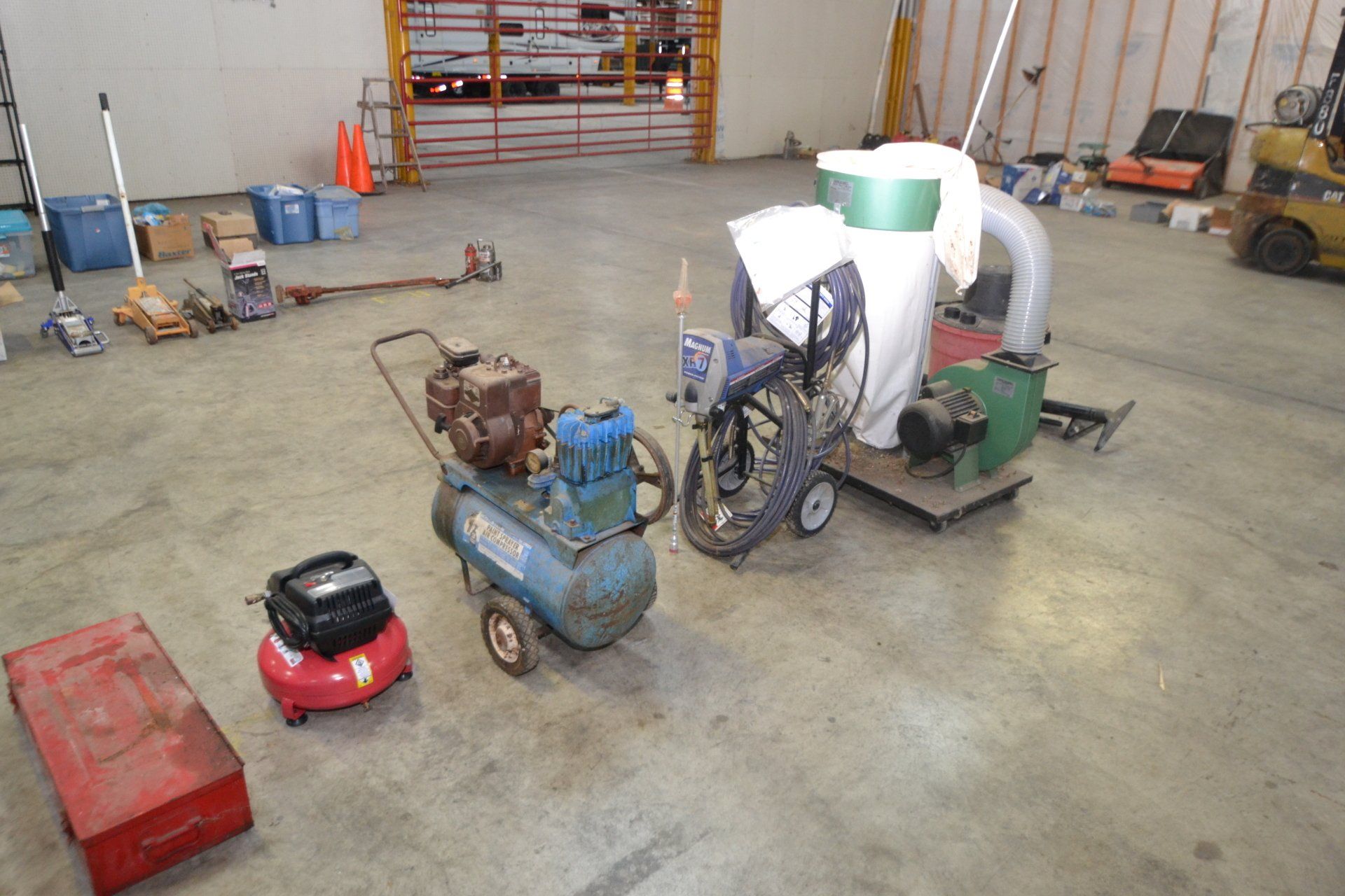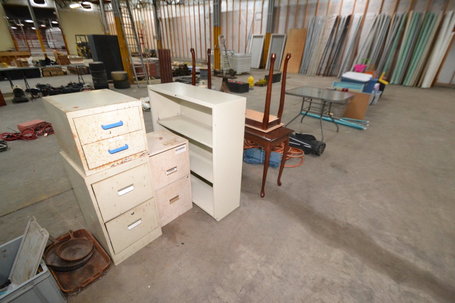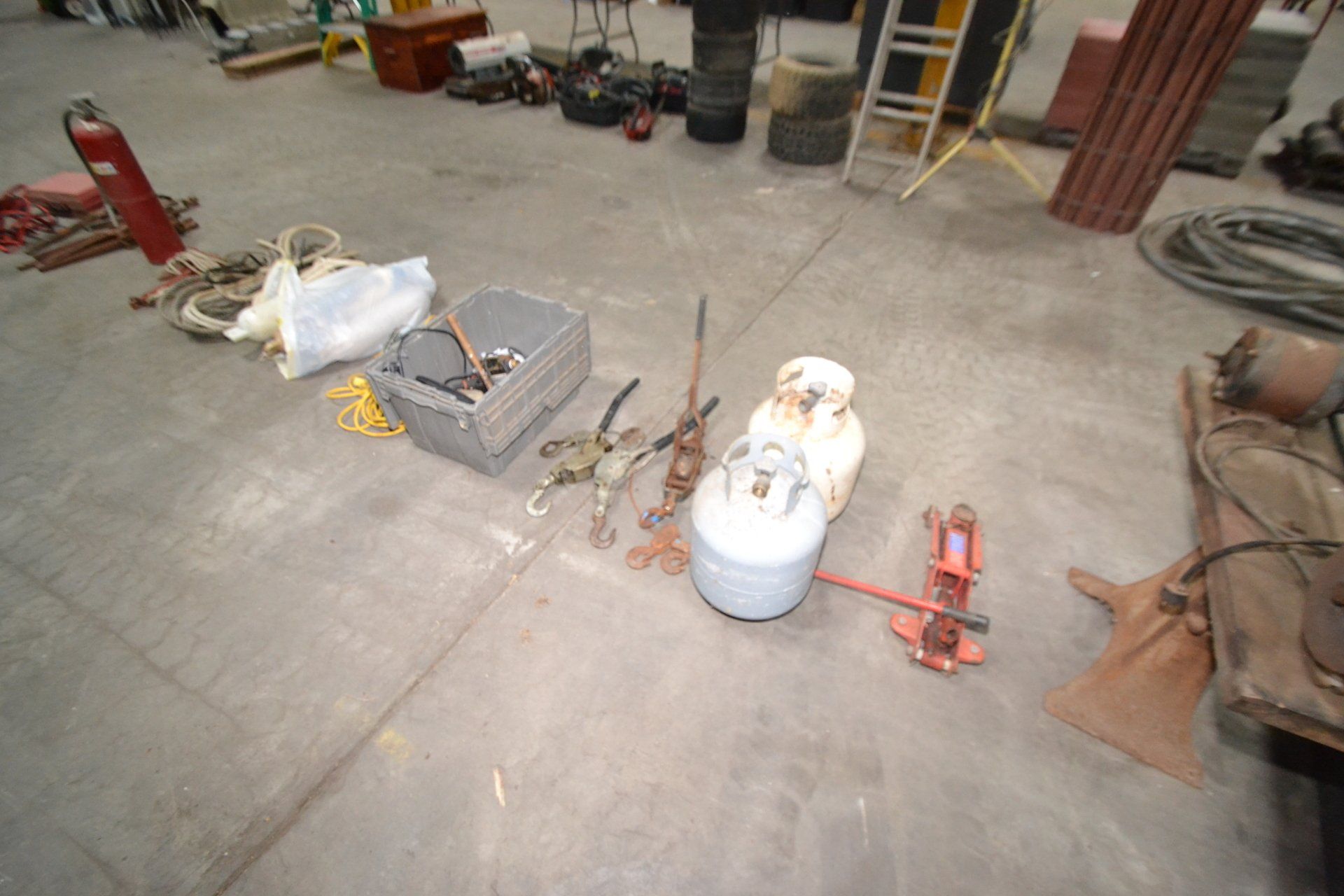 Miscellaneous-new cement mixer; power drain opener; tool cabinets; tool boxes; drill presses; bench grinders; large airless paint sprayer; port-a-powers; floor jacks; hoses; cords; cabinets; shelves; power washer; new LP gas heaters; folding shop crane; boxes of new electric and plumbing parts; panels; breakers; wire; outlets; brass PVC and much, much more.