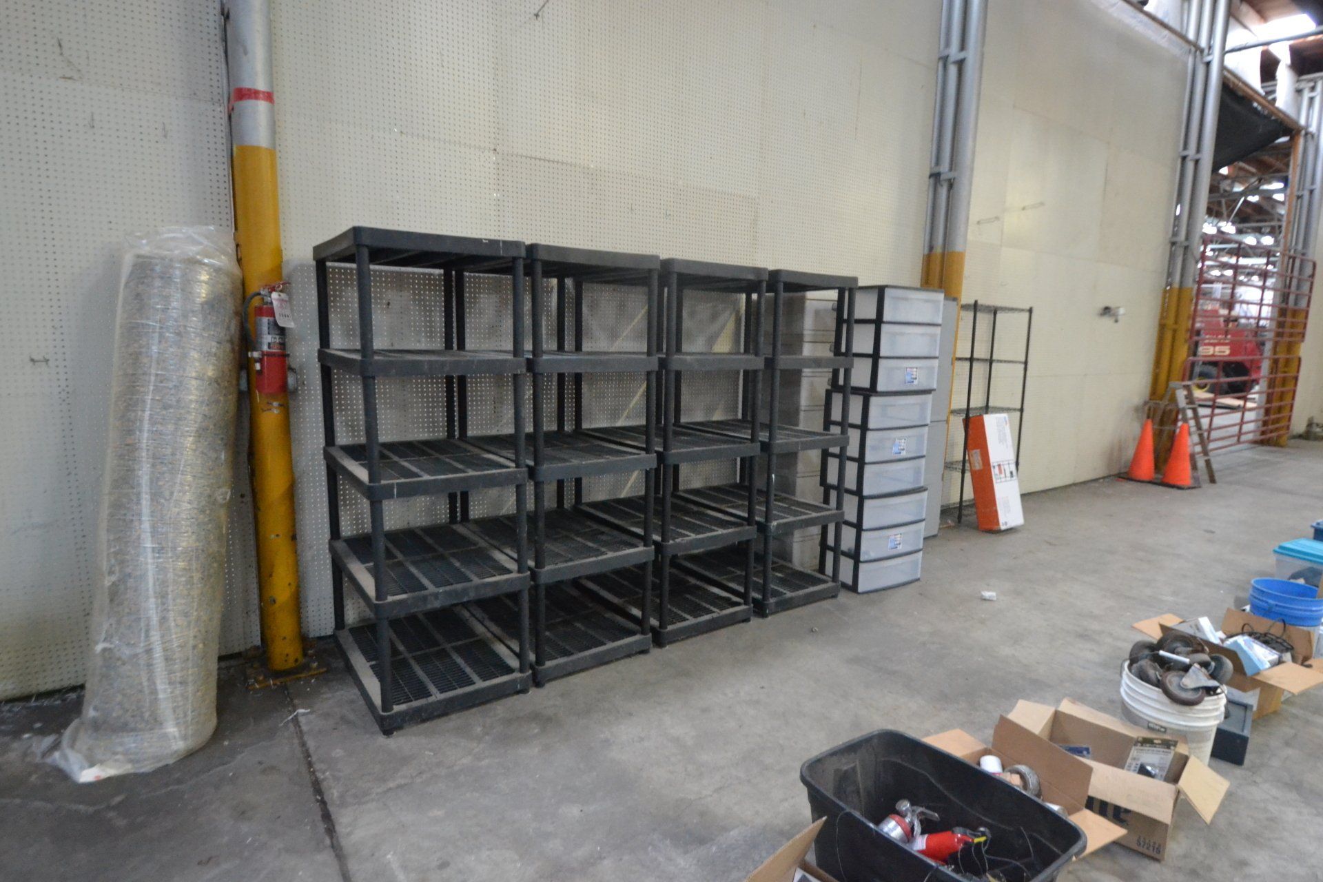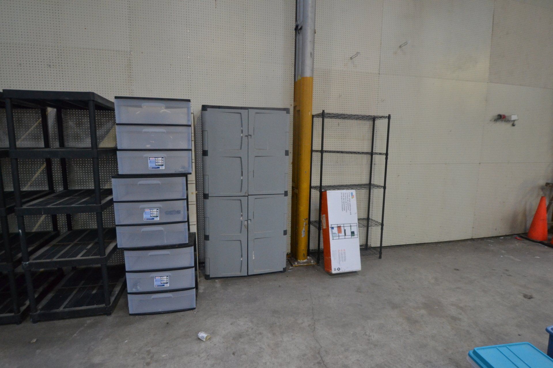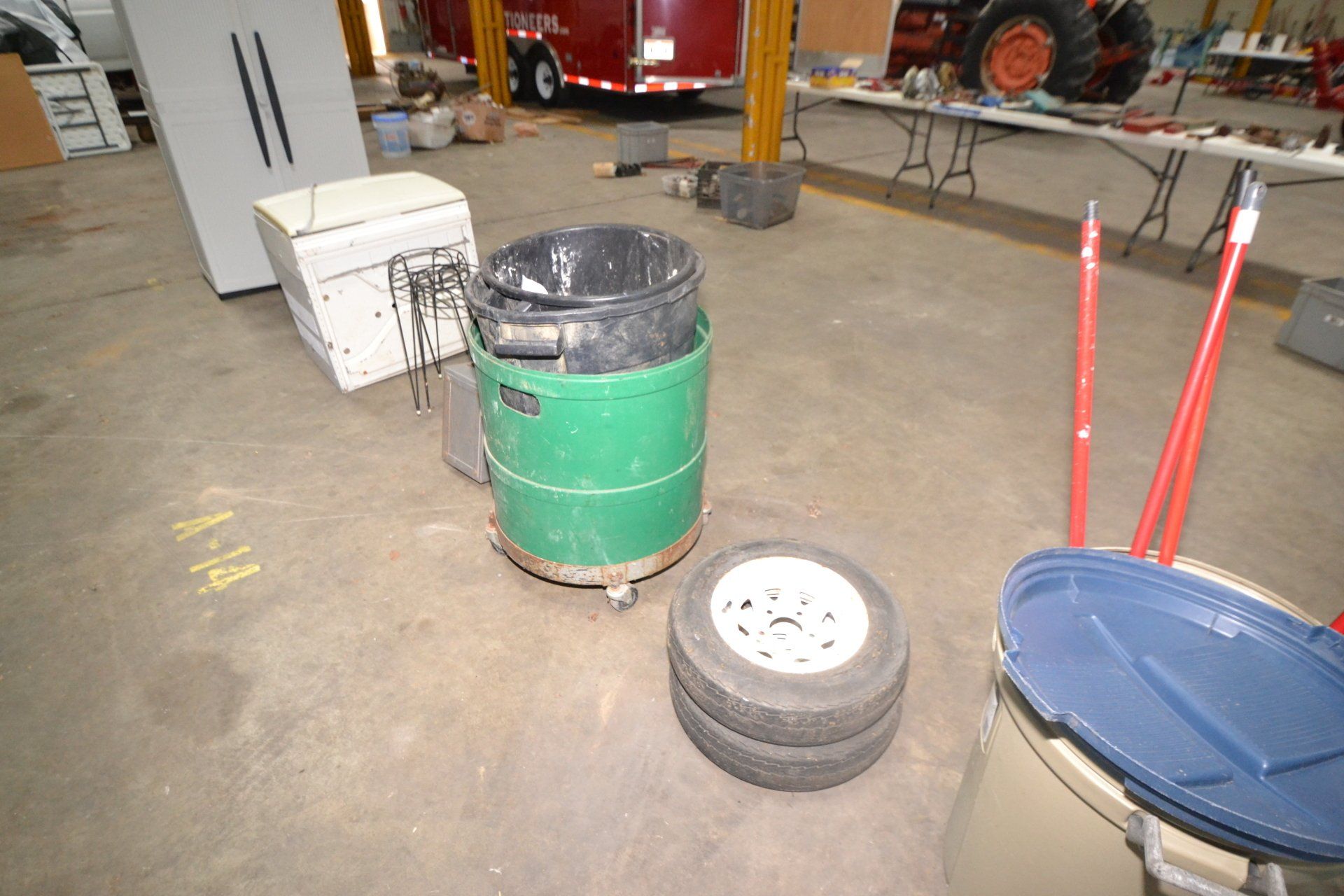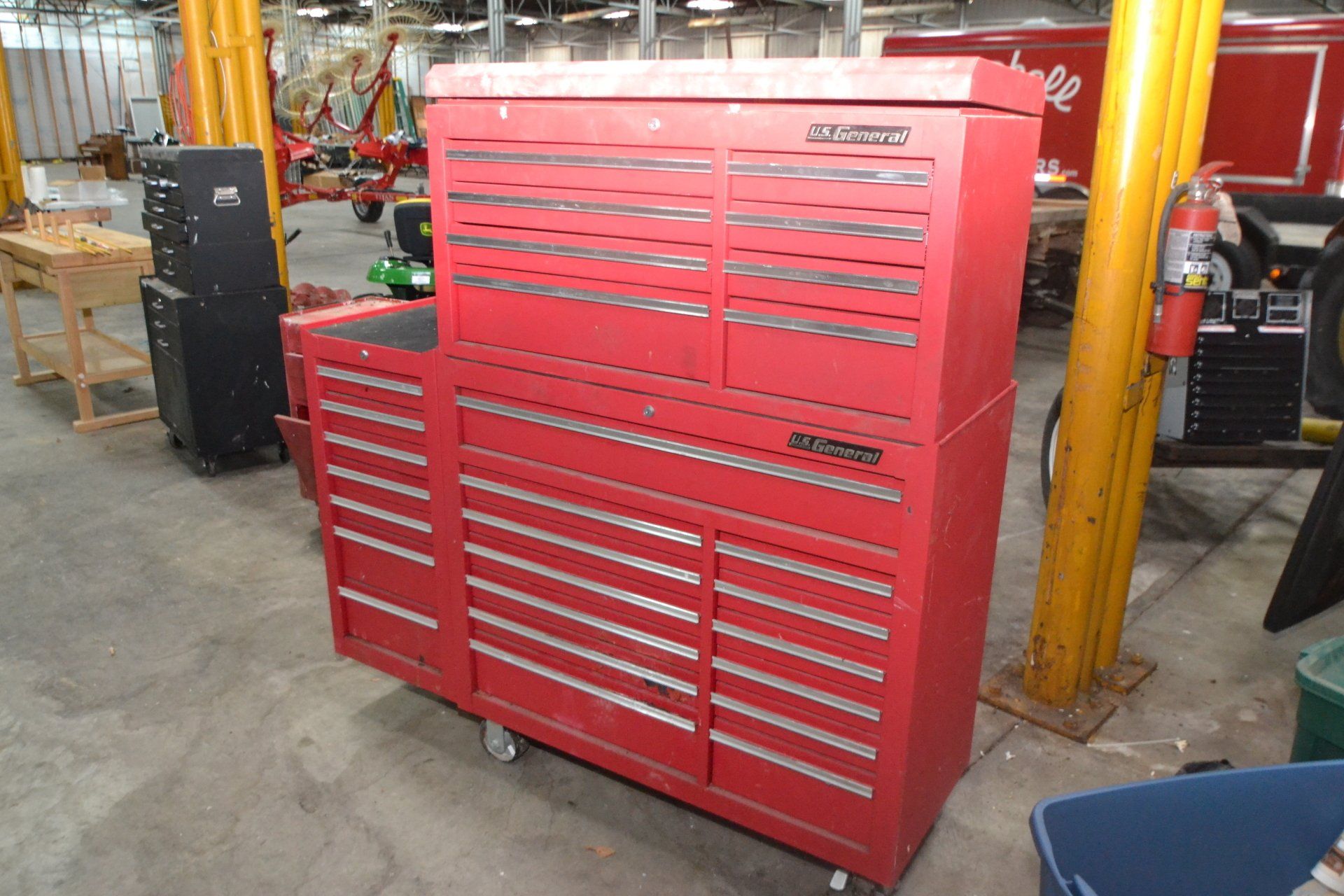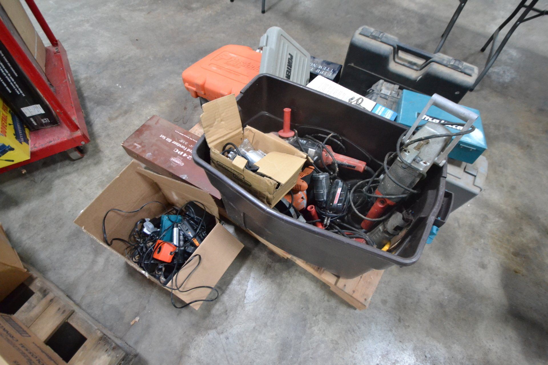 Miscellaneous-new cement mixer; power drain opener; tool cabinets; tool boxes; drill presses; bench grinders; large airless paint sprayer; port-a-powers; floor jacks; hoses; cords; cabinets; shelves; power washer; new LP gas heaters; folding shop crane; boxes of new electric and plumbing parts; panels; breakers; wire; outlets; brass PVC and much, much more.