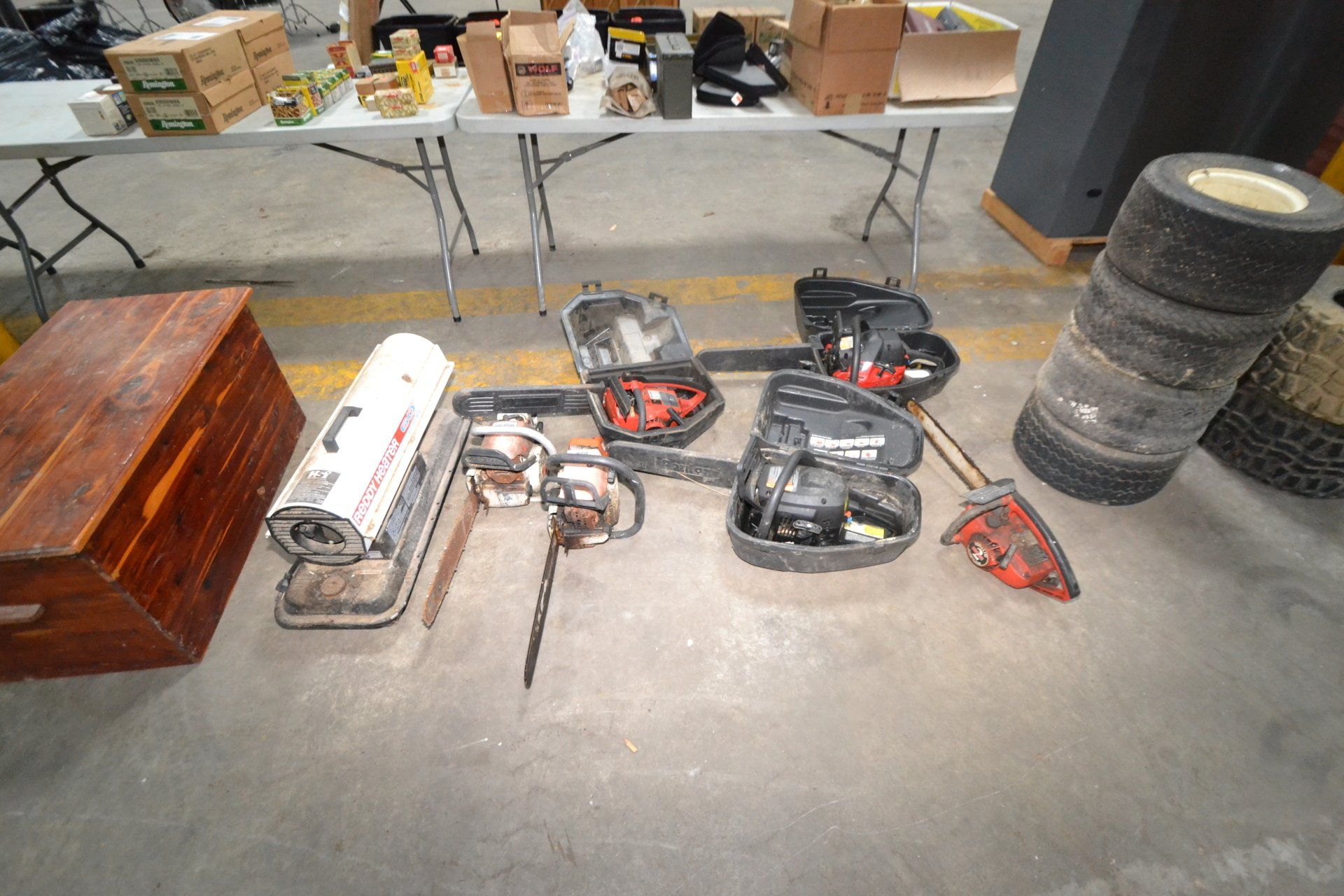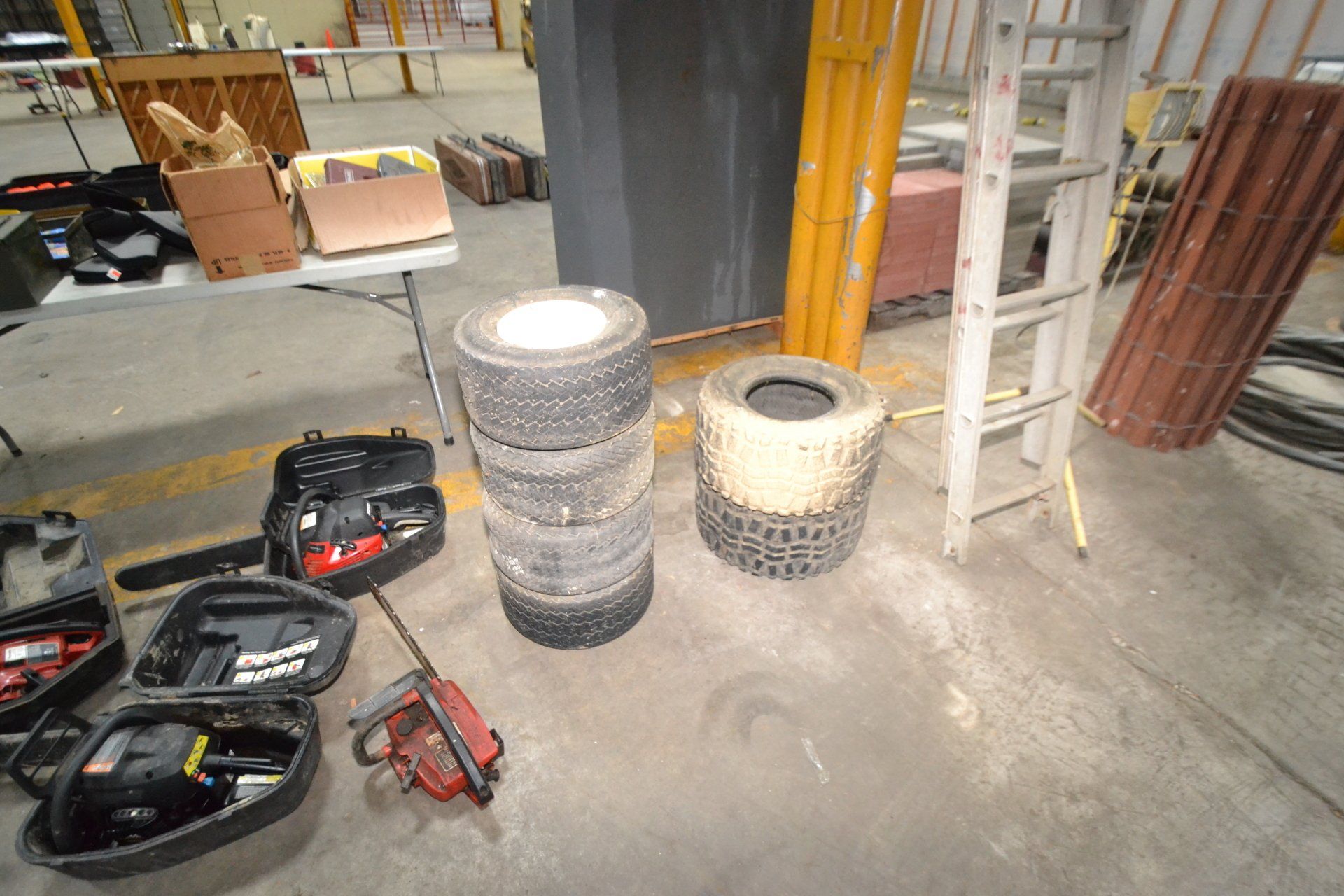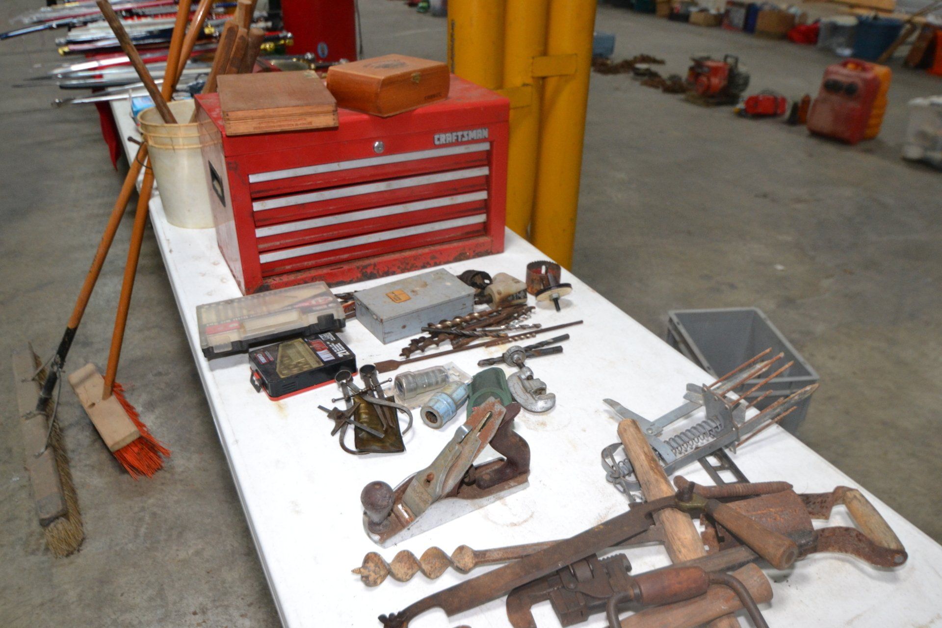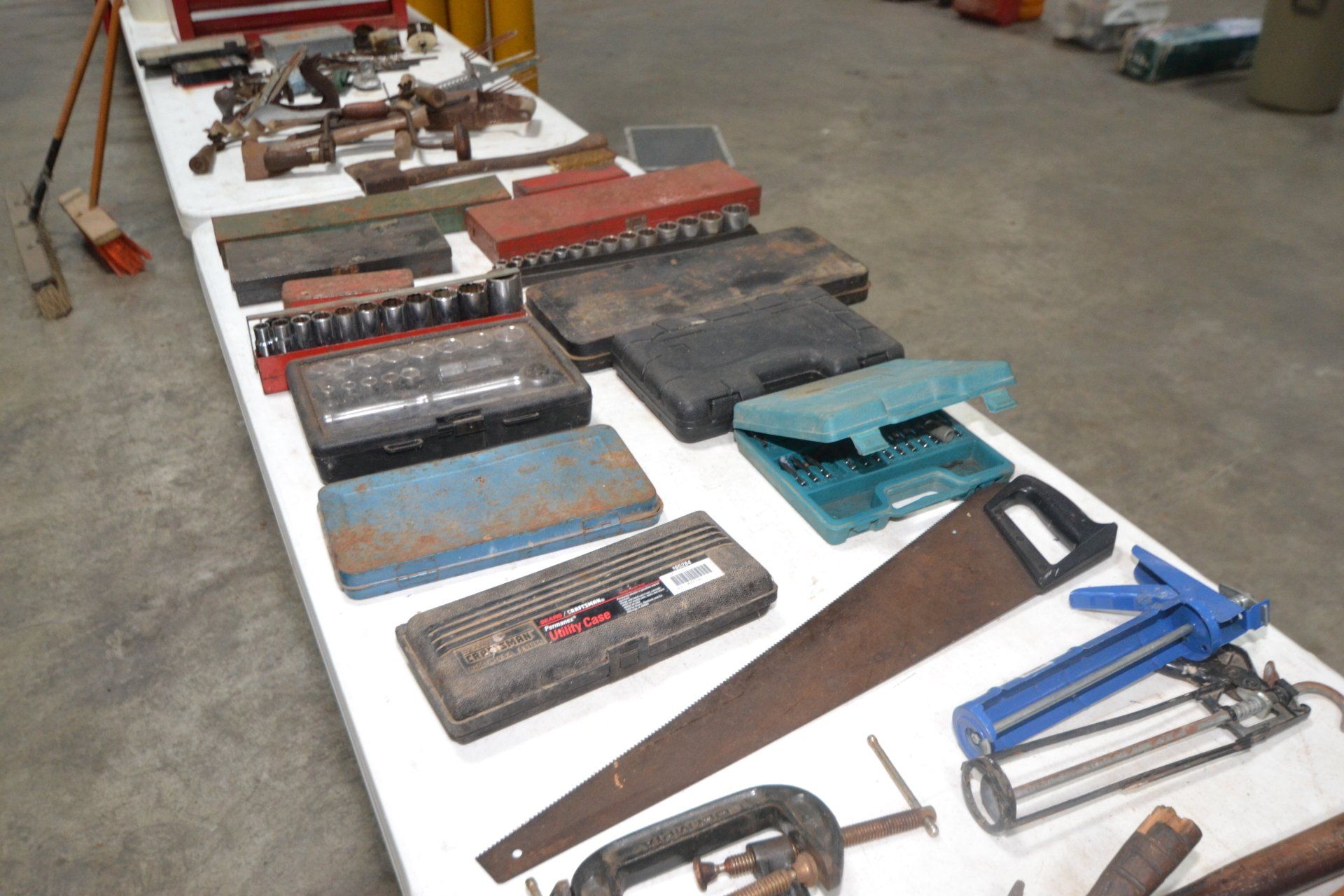 From a Local Estate-wrenches; sockets; hand tools; garden tools; power tools; upright compressor; horizontal compressor; grinders; saws; toolboxes; aluminum ATV ramps; chain saws, golf cart wheels & tires; ladders.
