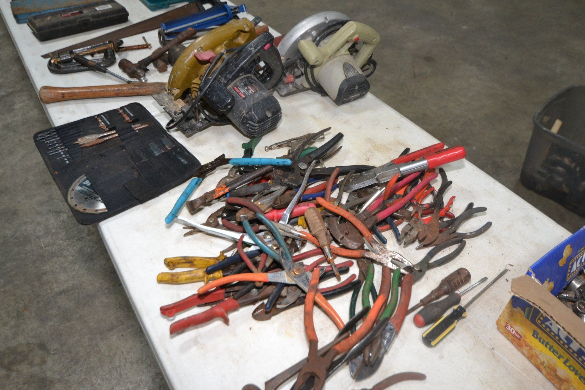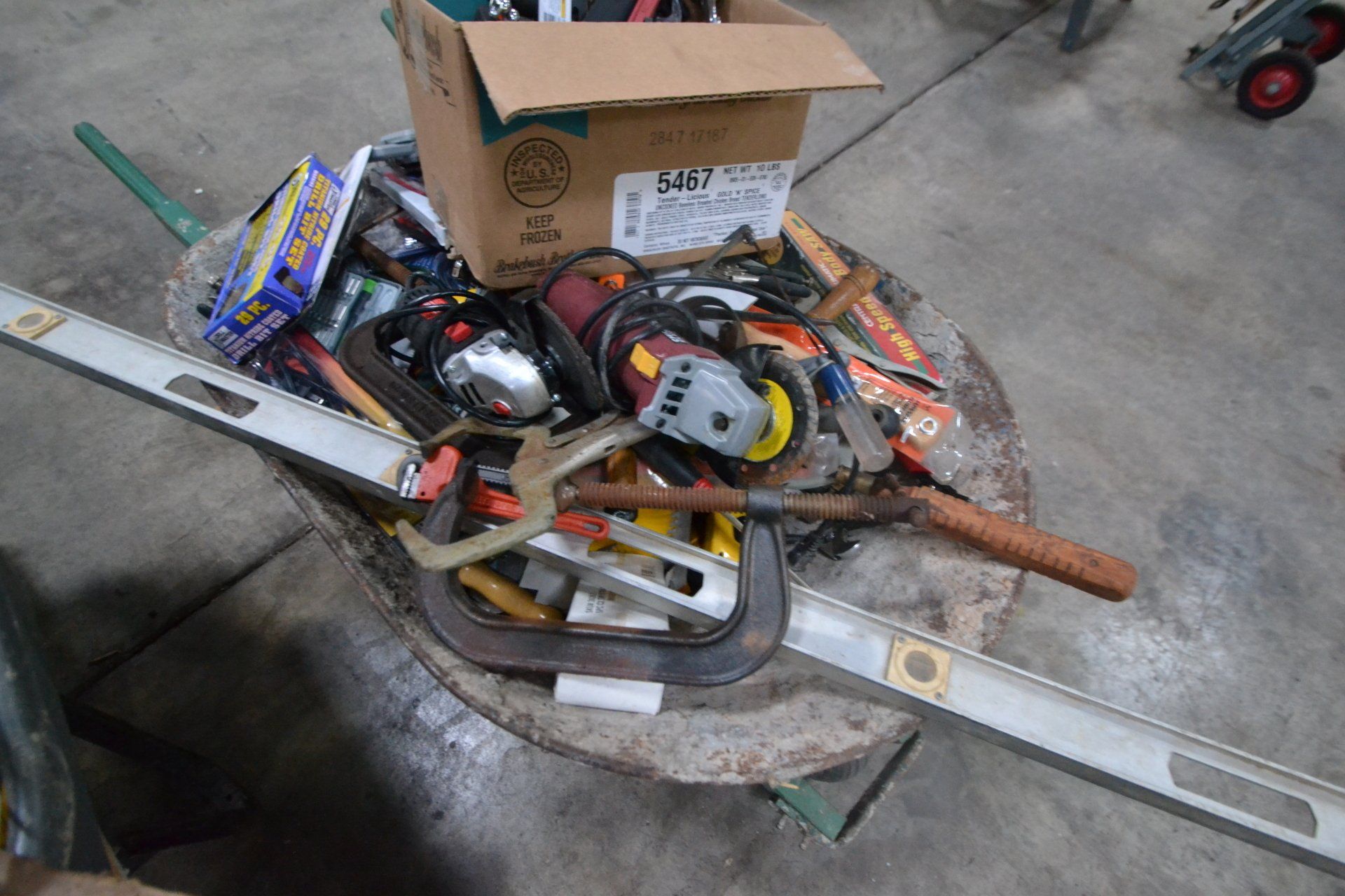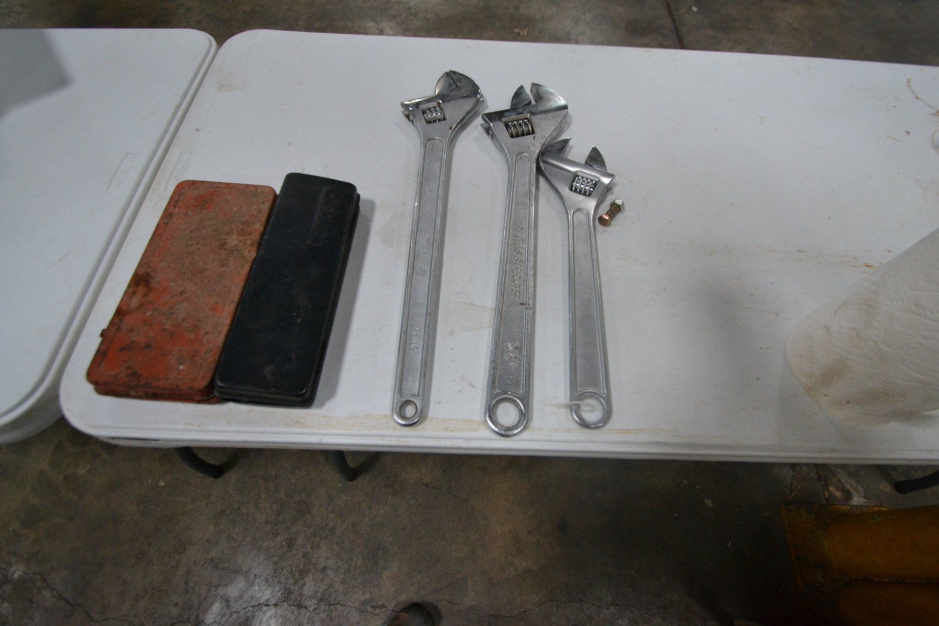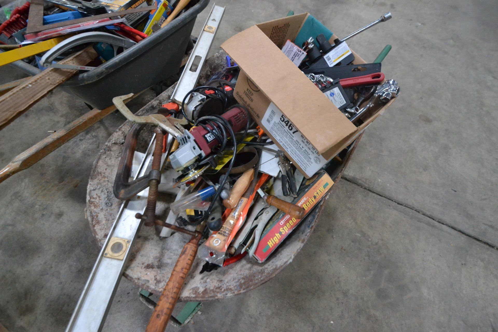 From a Local Estate-wrenches; sockets; hand tools; garden tools; power tools; upright compressor; horizontal compressor; grinders; saws; toolboxes; aluminum ATV ramps; chain saws, golf cart wheels & tires; ladders.