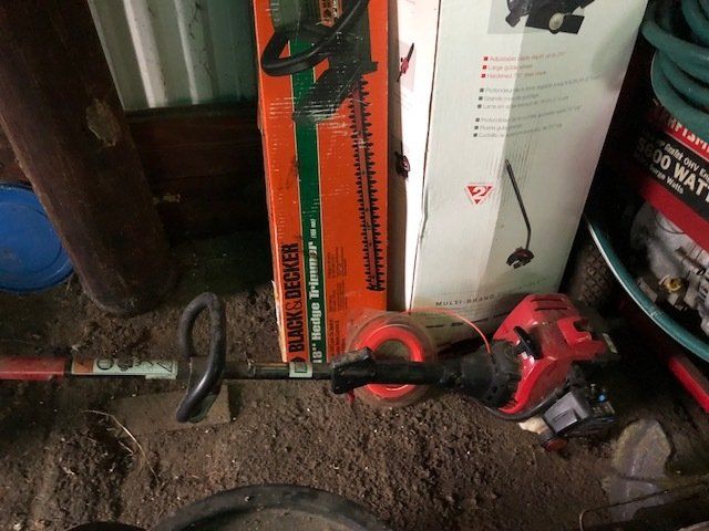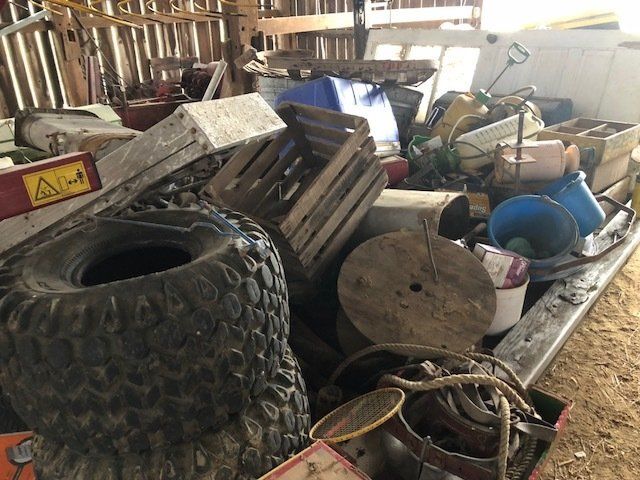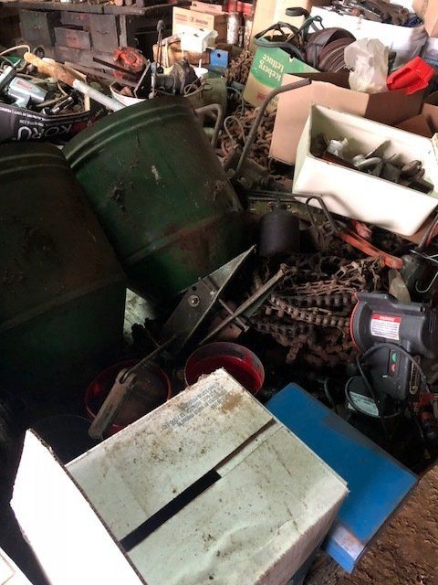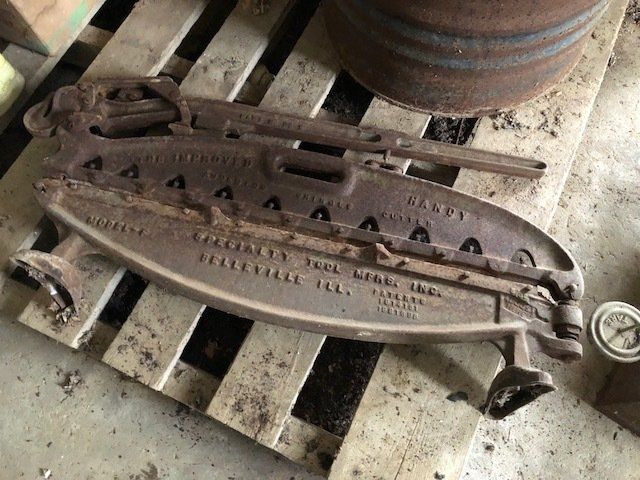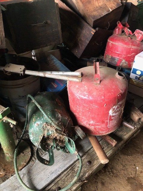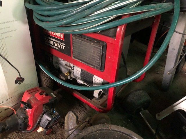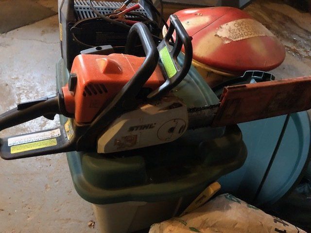 Craftsman 5600 watt generator; 100 lb. plus anvil; Stihl 180 chainsaw; 4 wheeler spray tank; table saw; battery chargers; acetylene torches and tanks; ¾” socket set; Lincoln buzz box; air tank; drill press; hyd. Press; pipe vise; air tools; vises; lawn tools; torpedo heaters; ratchet wrenches; water pumps; seed cleaner; fence post; high tensil fencing; lots of tool boxes; ladders; wood stoves; large pile of misc. lumber; hedge trimmer; more.