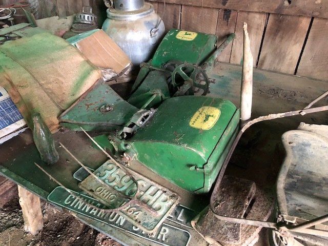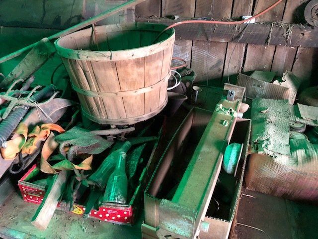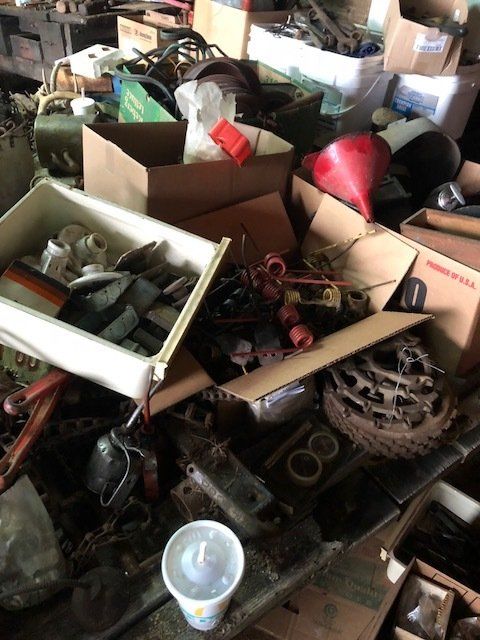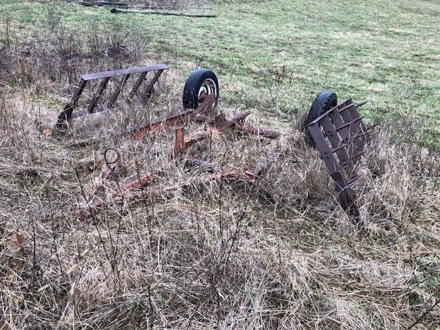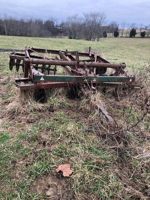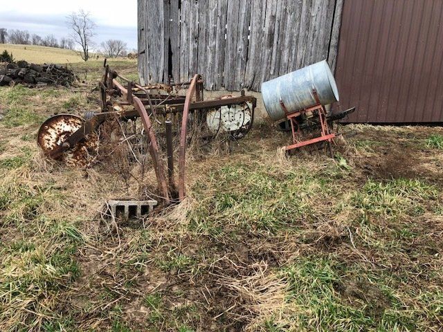 7’ pull type rotary cutter; JD 953 w/ flatbed; 12’ wheel disc;(2) 3-pt blades; 16’ harragator; 3-pt log splitter; 3-16 plows; JD 3-14 plows; JD 13 hole grain drill single disk opener w/ grass seed; flat bed wagon; NH triple beater manure spreader; NH 351 grinder-mixer; complete set of JD “G” cultivators; tobacco setter; 3-pt seeder; 10 suitcase weights; misc. cultivator parts; Ford bumper; hyd. Cylinders; top link; drawer bars; tray seeder 253-242; more.